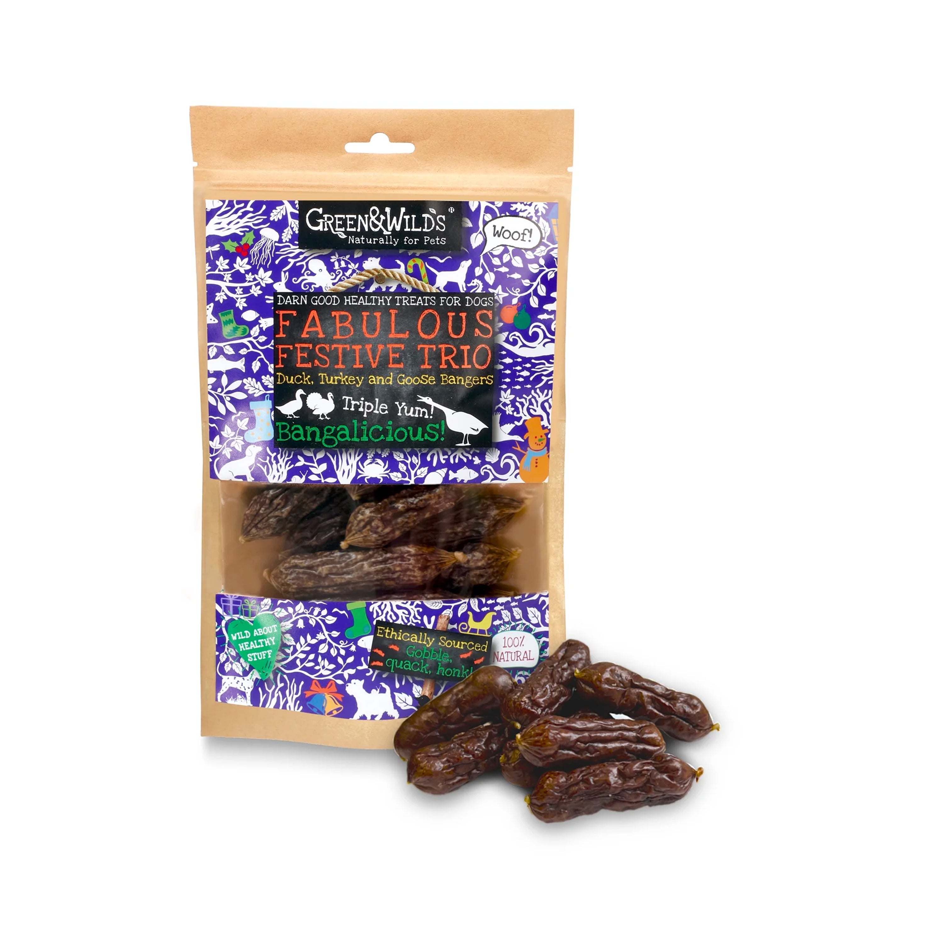 Green & Wilds Eco Dog Treats - Fabulous Festive Trio of Bangers