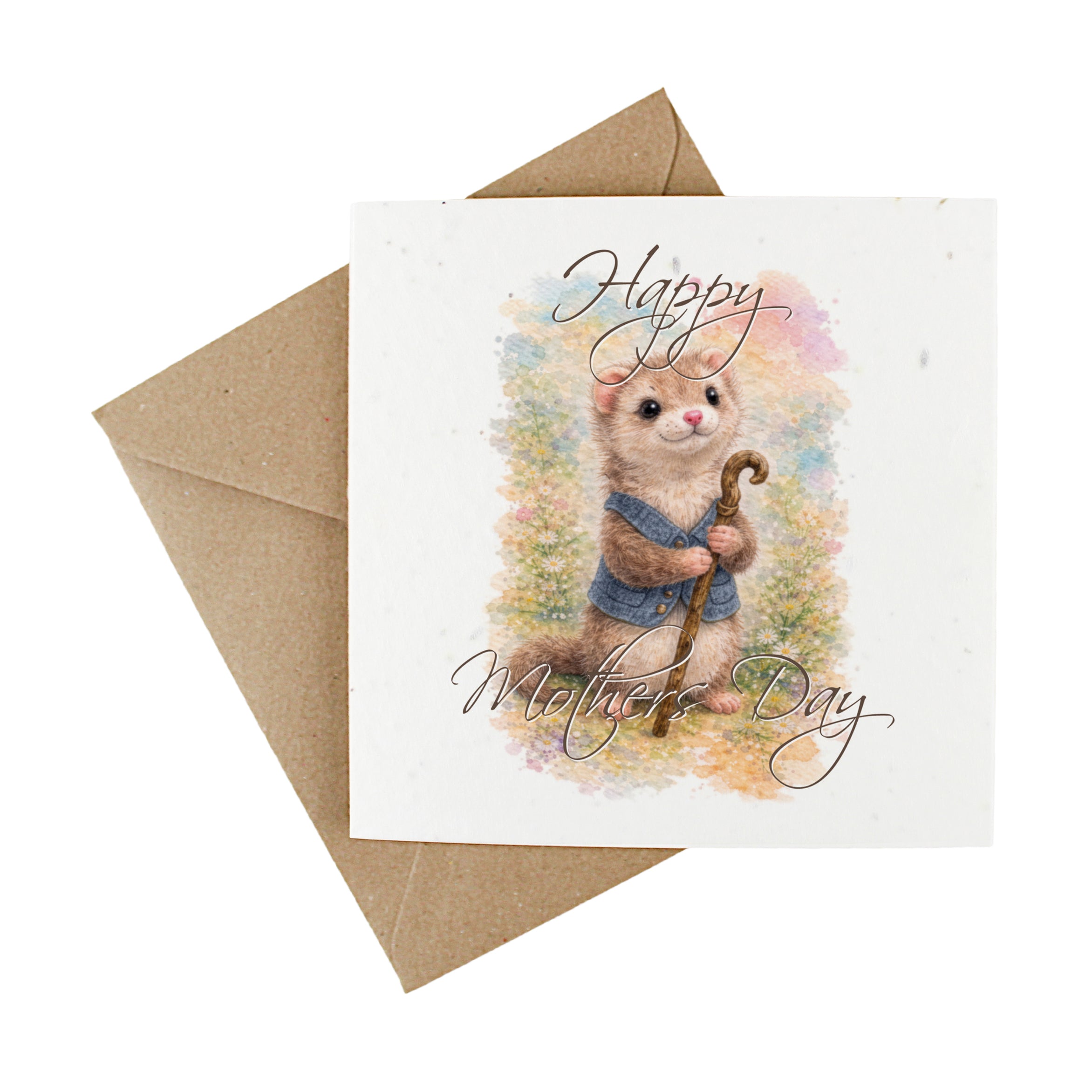 Show your loved ones just how much you appreciate them this Mother's Day with this adorable, plantable wildflower card! Decorated with the sweetest ferret holding a walking cane, on a stunning pastel background.