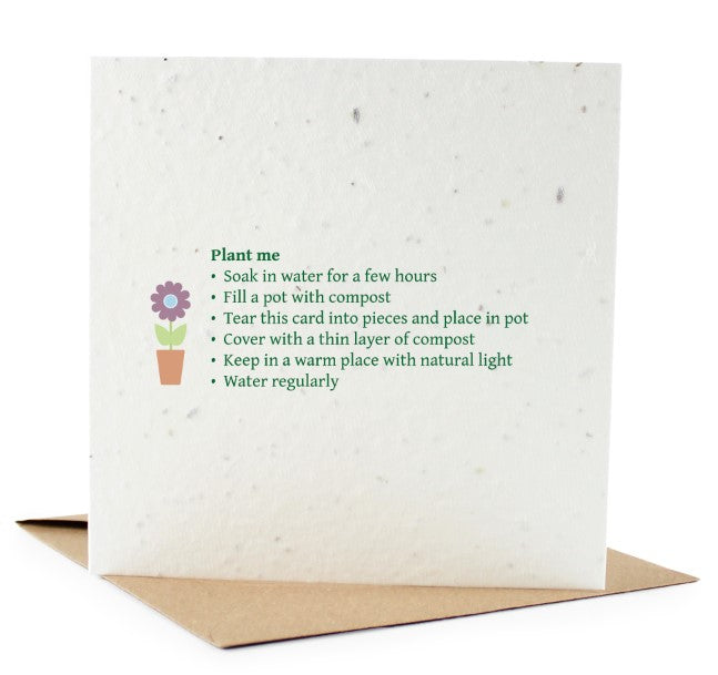 Note: Due to the nature of the card, there are sometimes small imperfections. These may give a rough texture, but add to the handcrafted look of the card and ensure that each wildflower card is slightly different and unique! In addition, as with any type of seed the longer you wait to plant, the lower the germination. Consequently, it is advised that you plant your paper within a year of purchase for maximum growth.