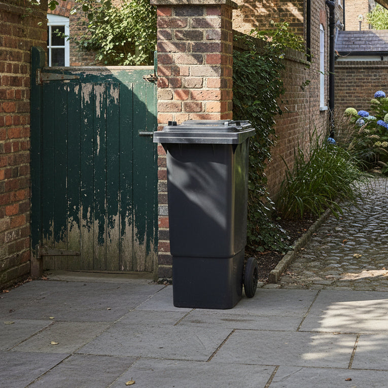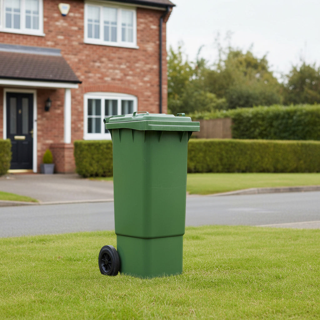Designed to withstand daily use and harsh weather conditions, this bin features a robust rear handle and two back wheels, ensuring smooth, comfortable manoeuvring - even when full.