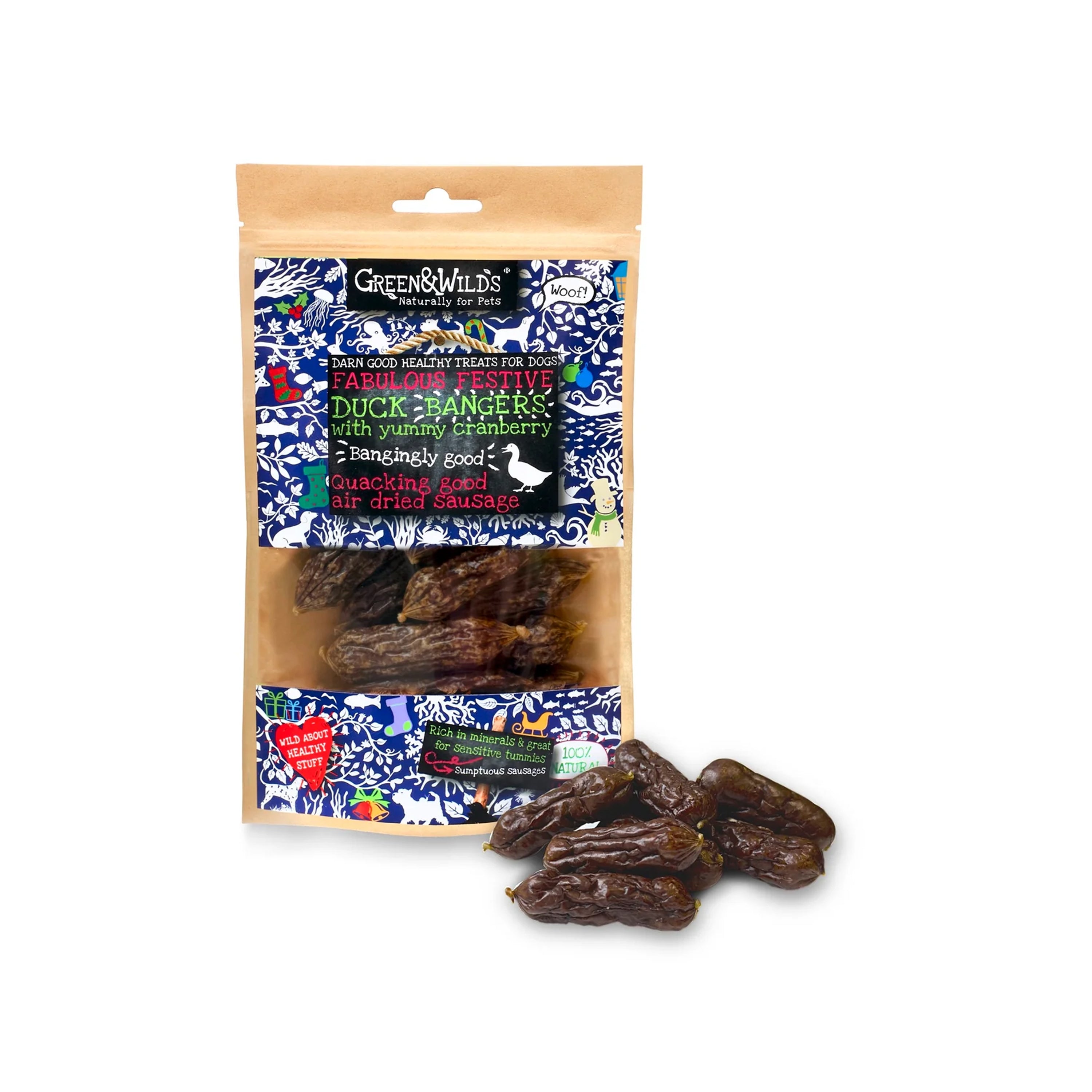 Green & Wilds Eco Dog Treats - Festive Duck & Cranberry Bangers