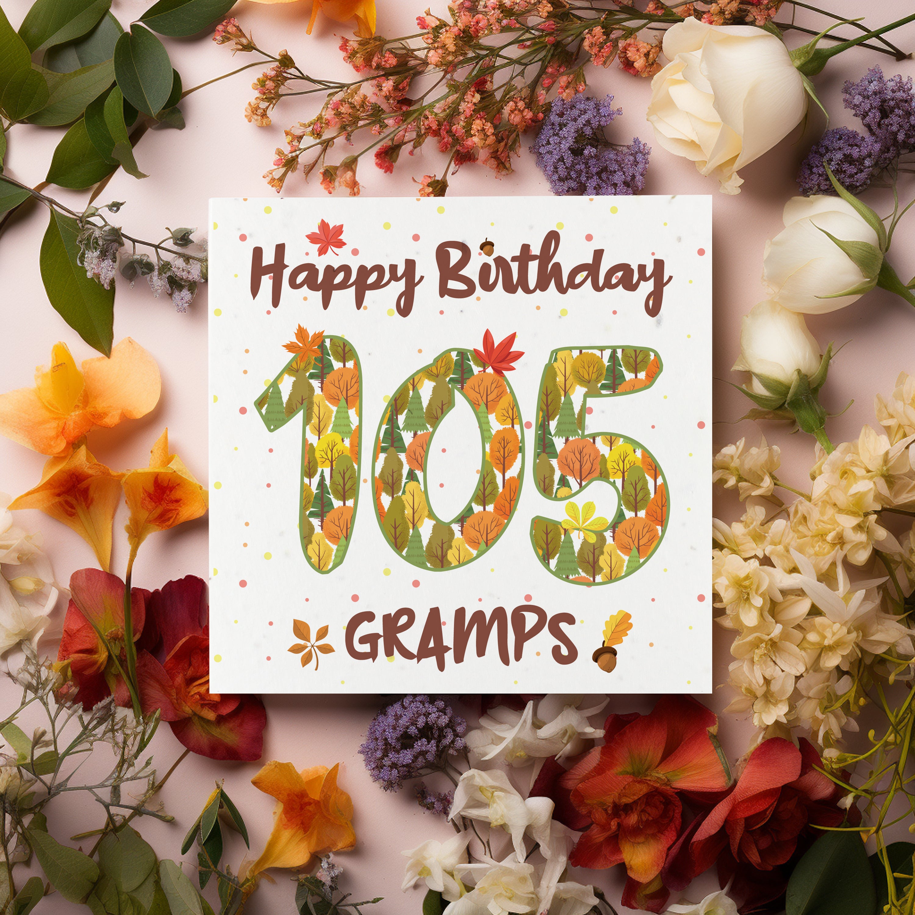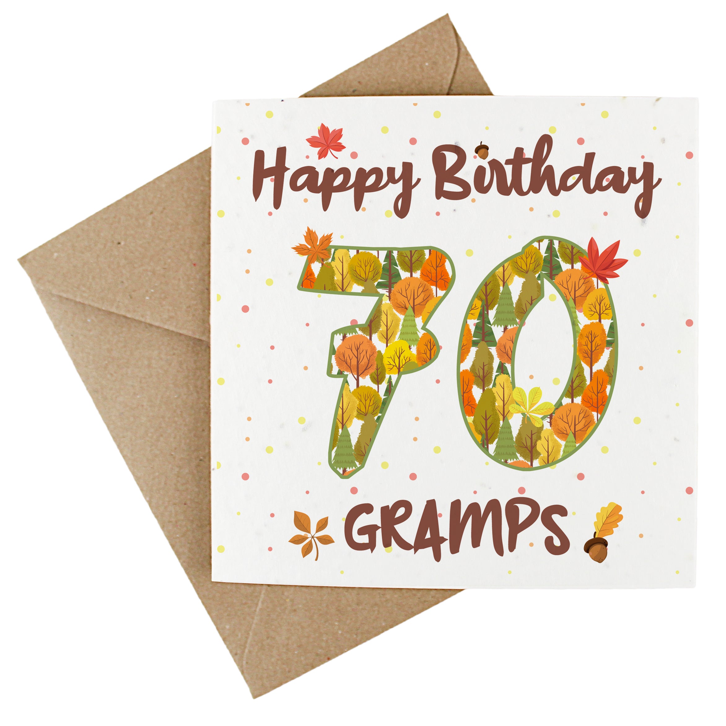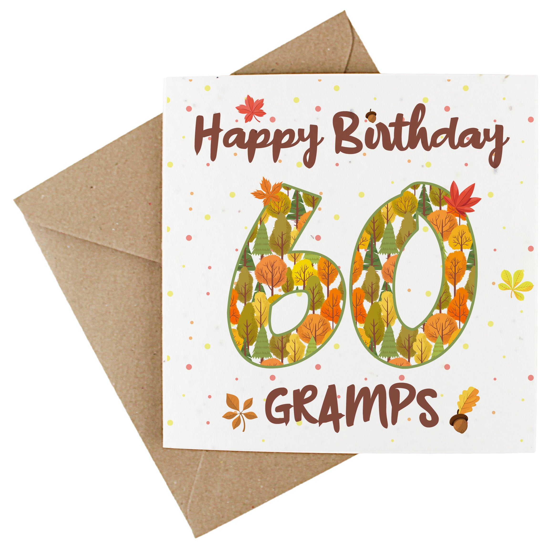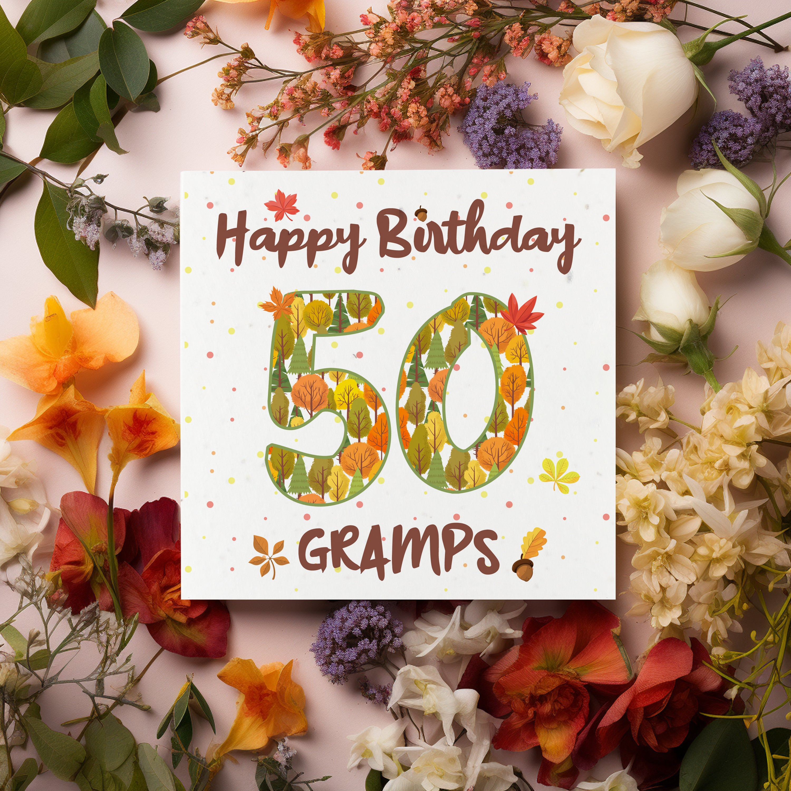 Available in a range of different ages, these charming cards feature an outdoorsy design, made up of earthy trees and autumnal leaves. Finished with text quoting "Happy Birthday Gramps", this wildflower-seeded greetings card doubles up as a plantable gift - perfect for wishing your gramps a fantastic birthday! The inside of the card is left blank to allow you to write your own message.