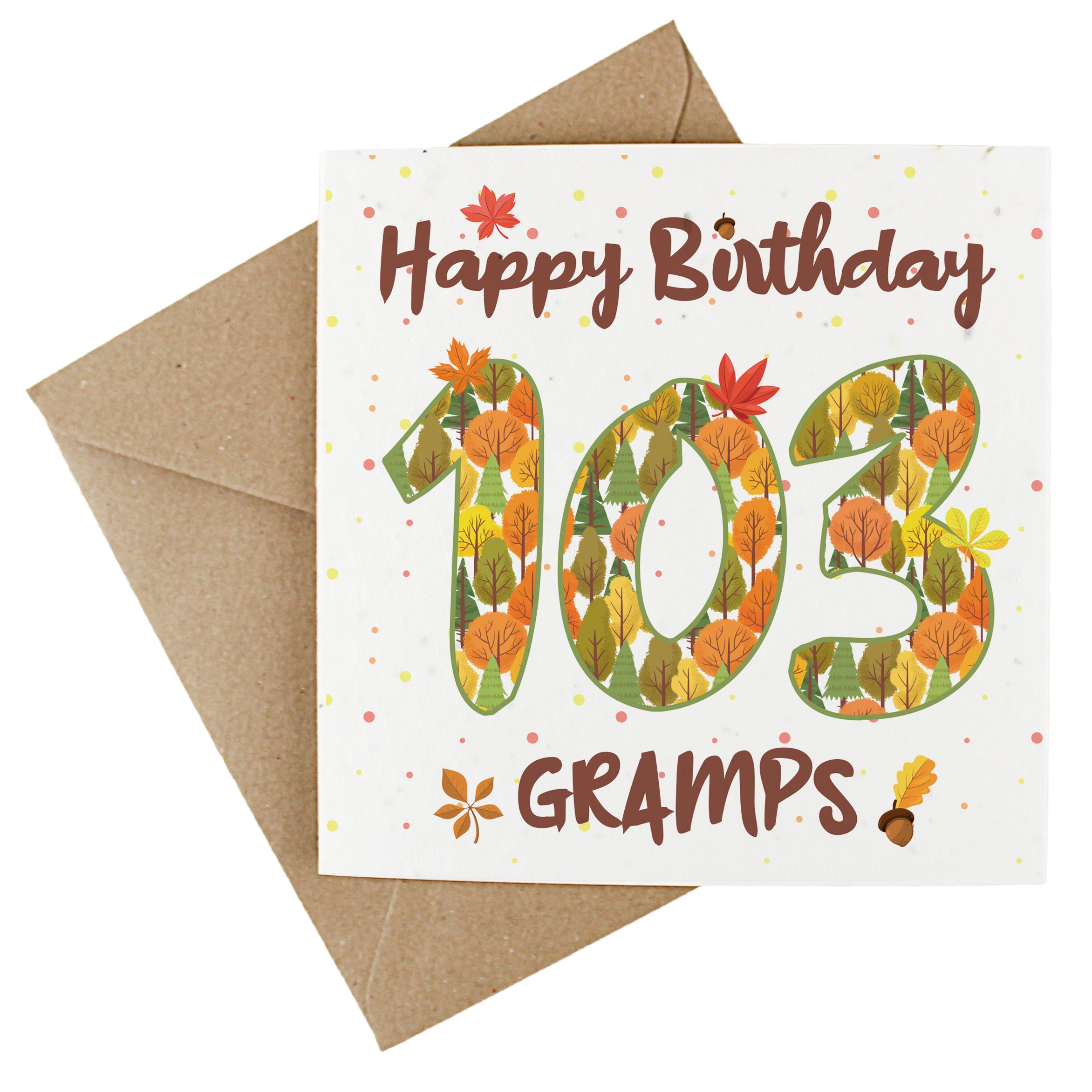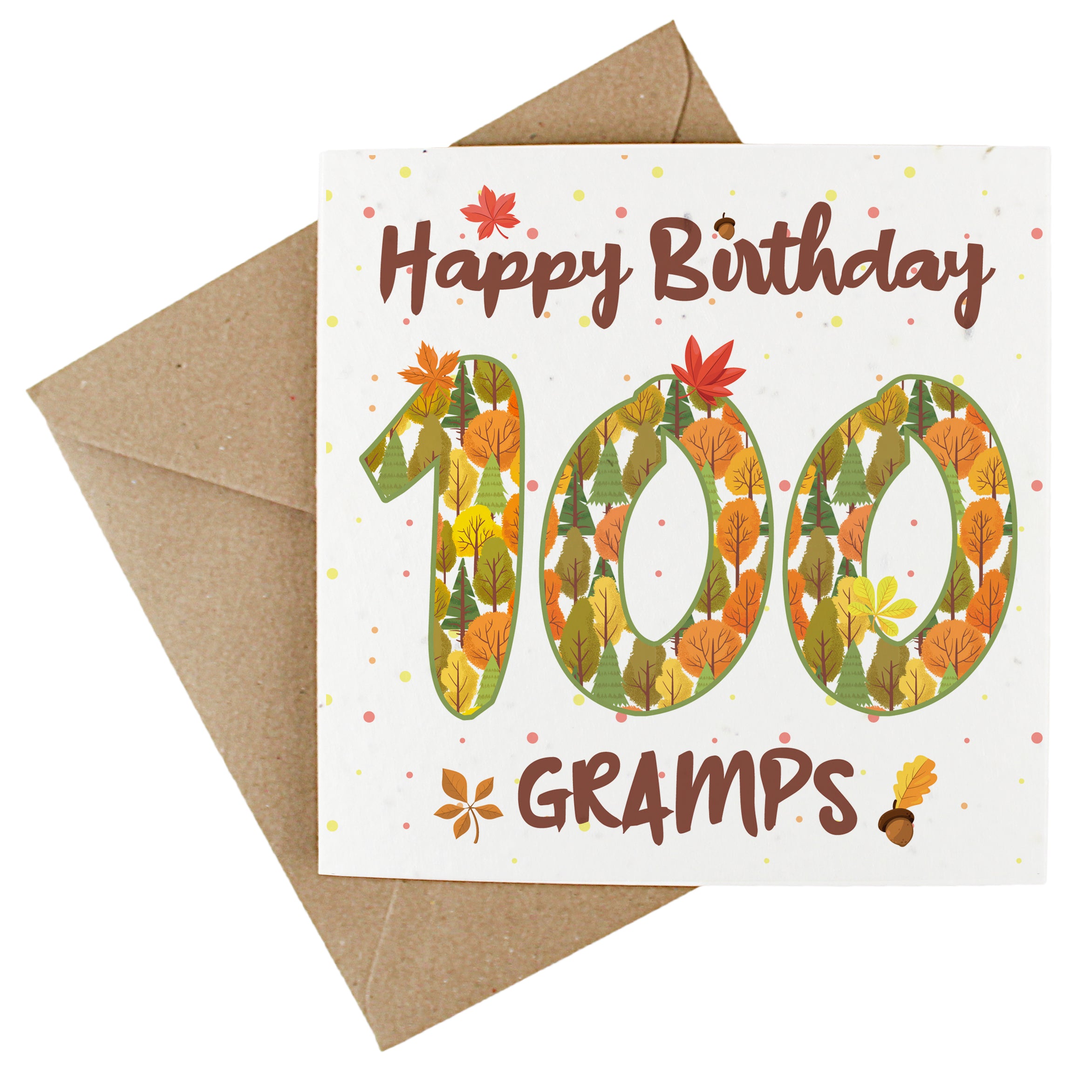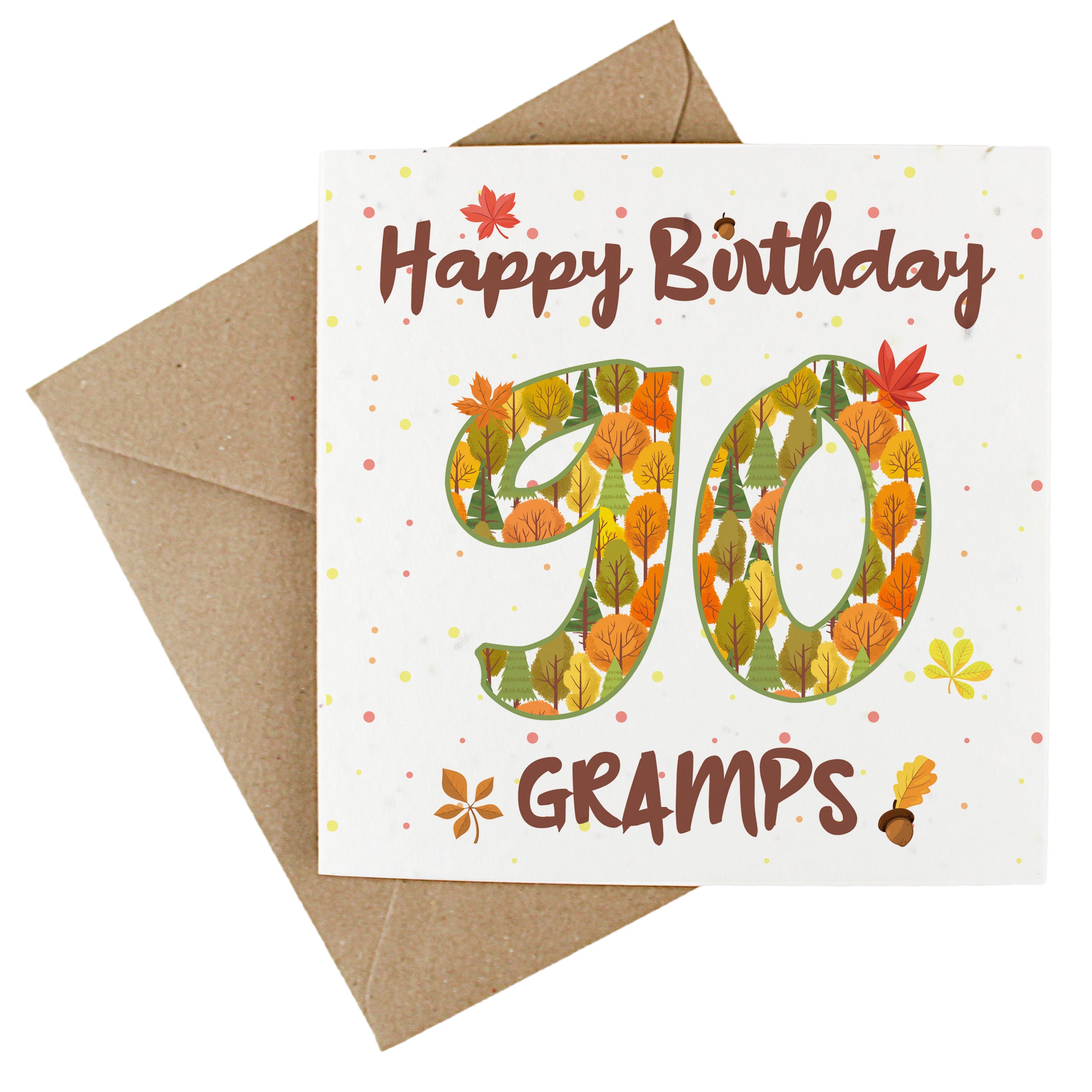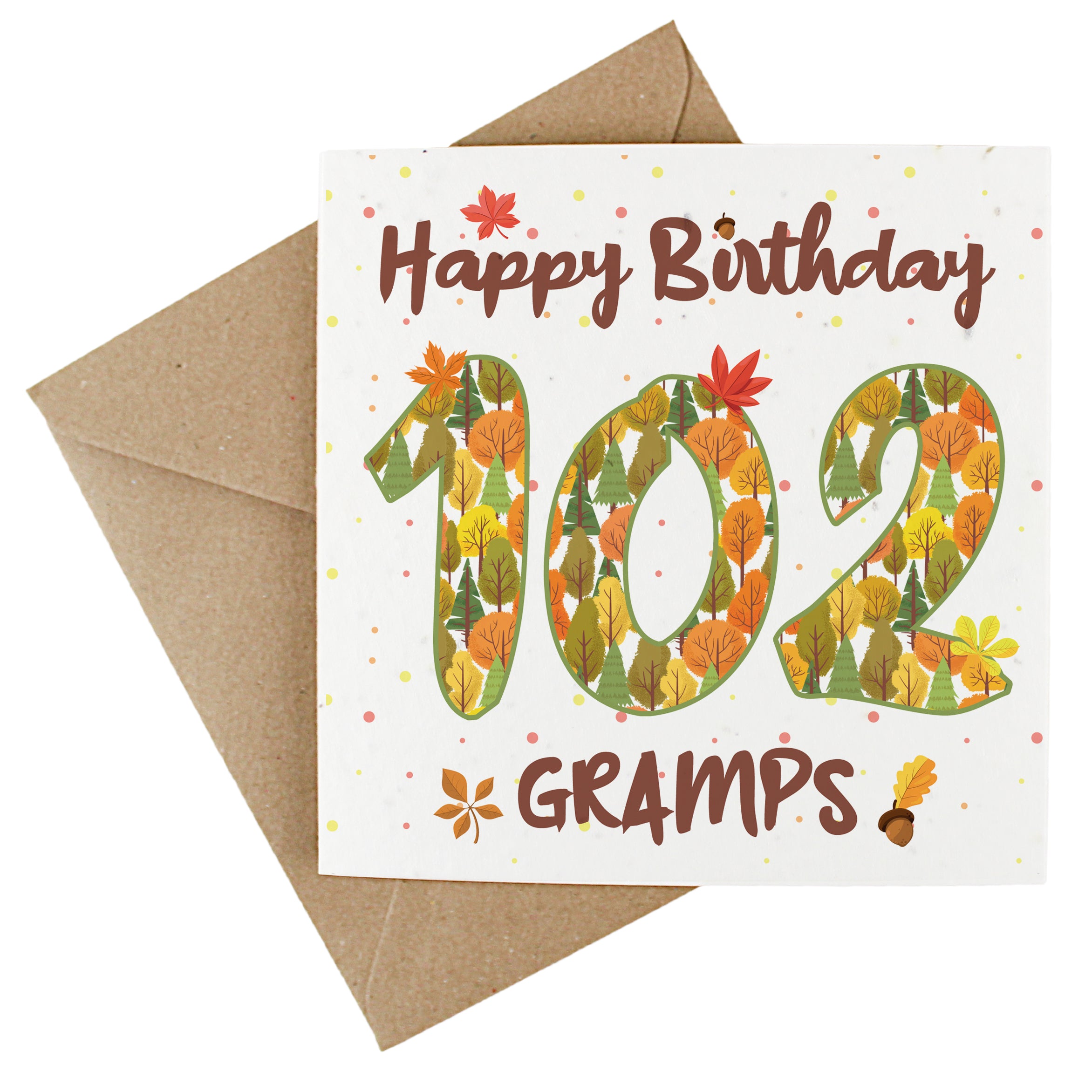 Available in a range of different ages, these charming cards feature an outdoorsy design, made up of earthy trees and autumnal leaves. Finished with text quoting "Happy Birthday Gramps", this wildflower-seeded greetings card doubles up as a plantable gift - perfect for wishing your gramps a fantastic birthday! The inside of the card is left blank to allow you to write your own message.
